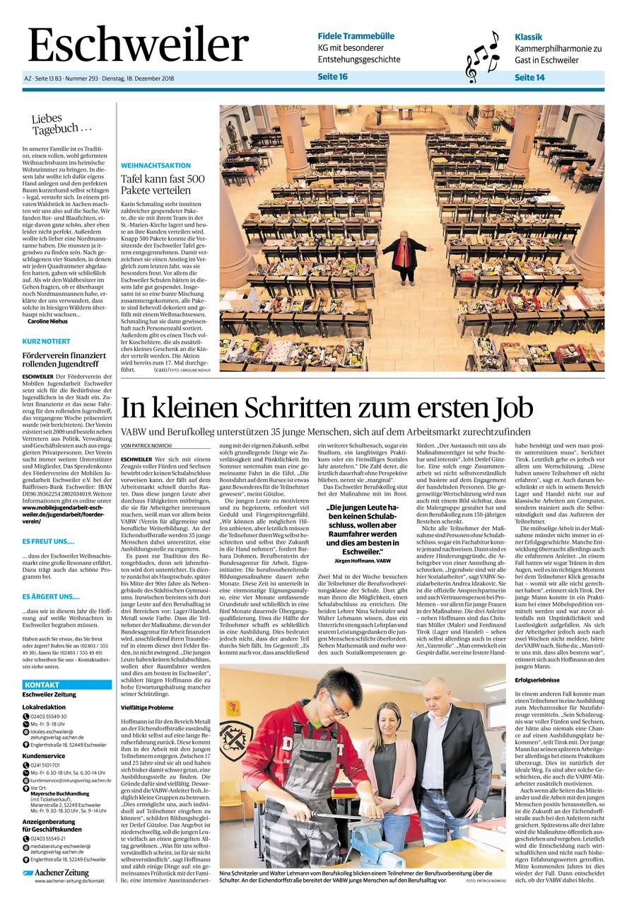 Artikel der Eschweiler Zeitung vom 18. Dezember 2018