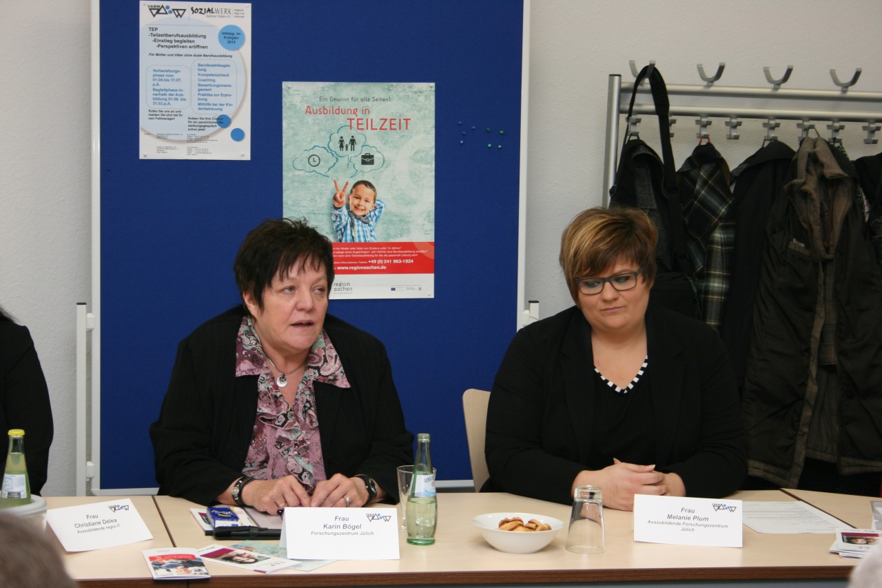 Im Jahr 2014/2015 wurden insgesamt 25 Teilnehmerplätze (16 in Aachen und 9 in Alsdorf) betreut. Frau Sabine Bußmann (VabW e.V.) und Frau Karin Wieder (Sozialwerk Aachener Christen e.V.) bringen potentielle Azubis und Betriebe zusammen, kümmern sich um Kinderbetreuungsmöglichkeiten und sind Ansprechpartnerinnen bei Problemen jedweder Art.