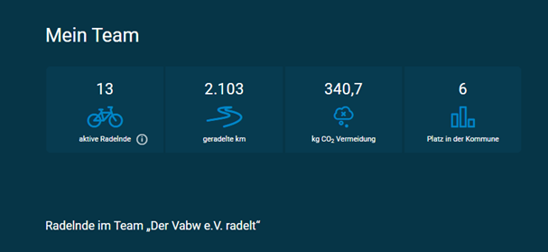 21 Tage STADTRADELN gehen zu Ende. Der Verein für allgemeine und berufliche Weiterbildung (VabW e.V.) hat in diesem Jahr zum ersten Mal an der Kampagne teilgenommen. In der Zeit vom 01.06.2023 – 21.06.2023 haben wir 2.103 Kilometer und 193 Fahrten klimafreundlich auf dem Rad zurückgelegt – und so 340,7 kg CO² vermieden! Von insgesamt 9 teilnehmenden Teams in Alsdorf hat der VabW e.V. damit Rang 6 in seiner Kommune belegen können.